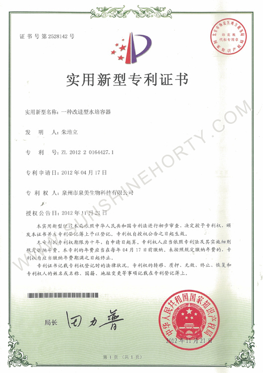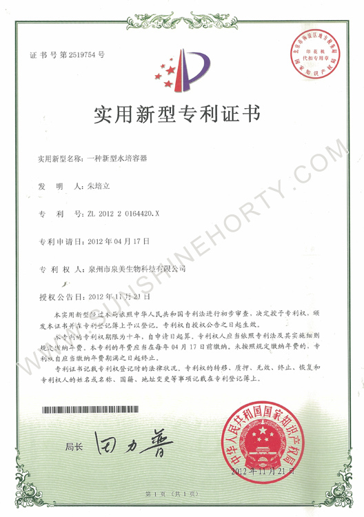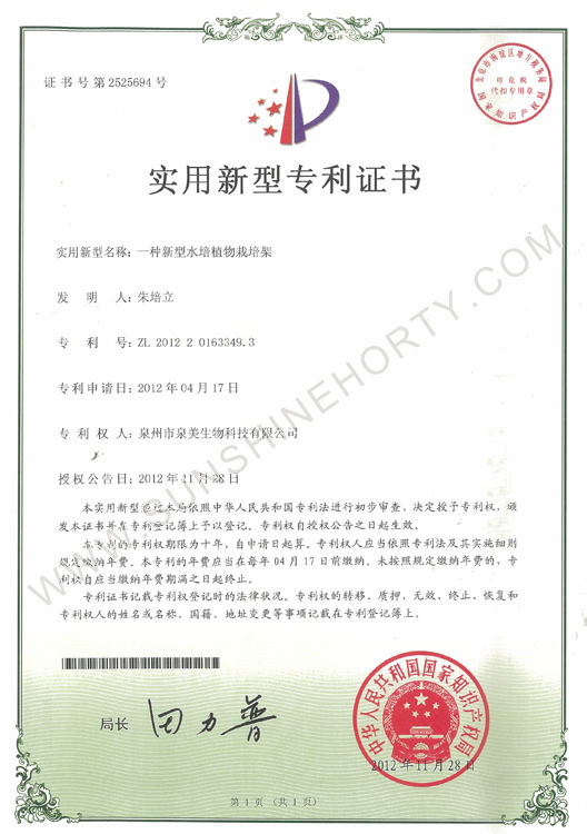 實(shí)用新型專利證書