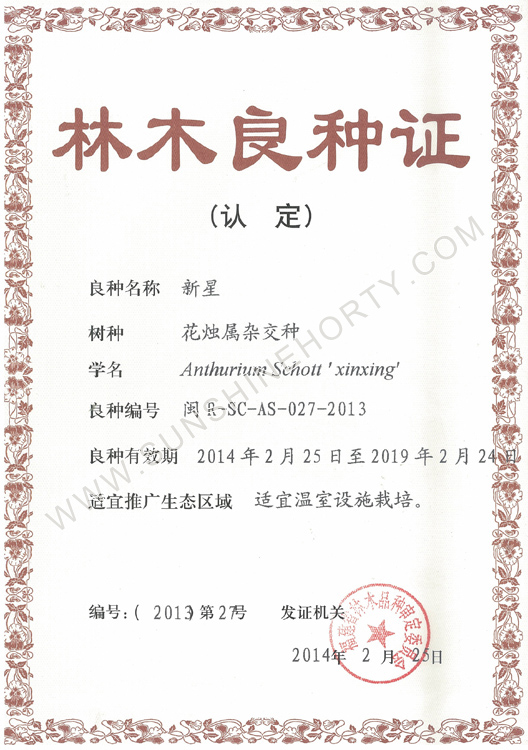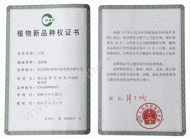 植物新品種權(quán)證書